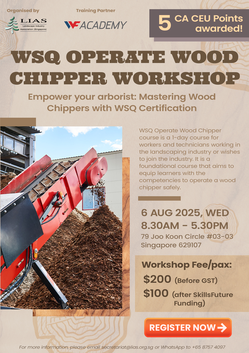 Please note that the wood chipper used for the workshop demonstration will be a smaller model than the one shown in the poster.
